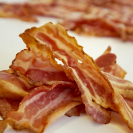 Sliced streaky bacon, lightly smoked for a traditional bacon taste. The rashers can be used straight from the chiller in sandwiches, baguettes and can also be reheated in seconds to add to burgers or jacket potatoes.