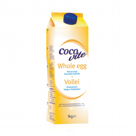 Coco Vite pasteurised liquid whole egg cracked and mixed ready for making scrambled egg or using in quiches and baked goods.