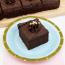 A rich and indulgent handmade chocolate sponge cake, topped with smooth chocolate frosting and finished with a trio of crisp chocolate pearls.