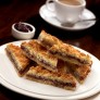 Buttery shortcake base spread with lots of raspberry jam, and topped with a thick layer of toasted coconut.