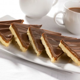 Also known as millionaire's shortbread. We now sandwich our own sticky caramel between a rich shortcake base and a layer of Belgian milk chocolate. Great Taste Award winner 2009. The Handmade Cake Company are justly famous for this one.