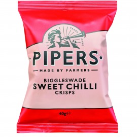 Pipers Biggleswade Sweet Chilli crisps are made using the finest local potatoes combined with chillies sourced from the UK. Cayenne and jalapeno chillies in our spice blend giving these crisps a slightly sweet taste with a very spicy kick.